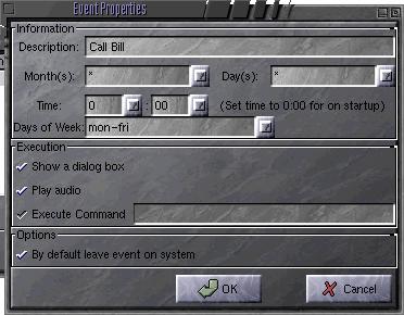 - Have a New Event Occur: Create a new event.  A new Edit Event window (See Figure 2) will popup when the user presses the OK button.