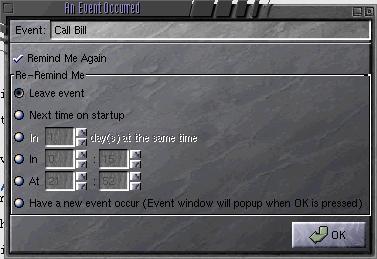 The third and final window is the Event Occurred dialog box (See Figure 3).  This is the window that pops up when an event occurs.